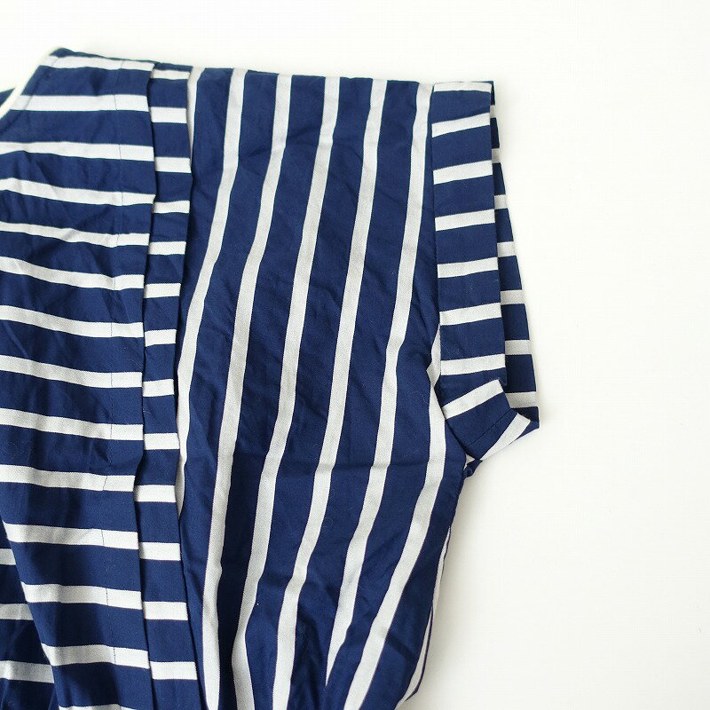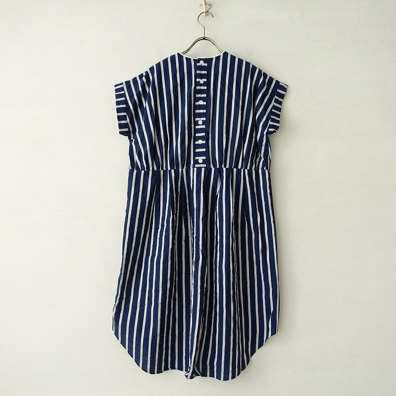 カラーはネイビー×ホワイト系のストライプで、コットン地で仕立てられています。