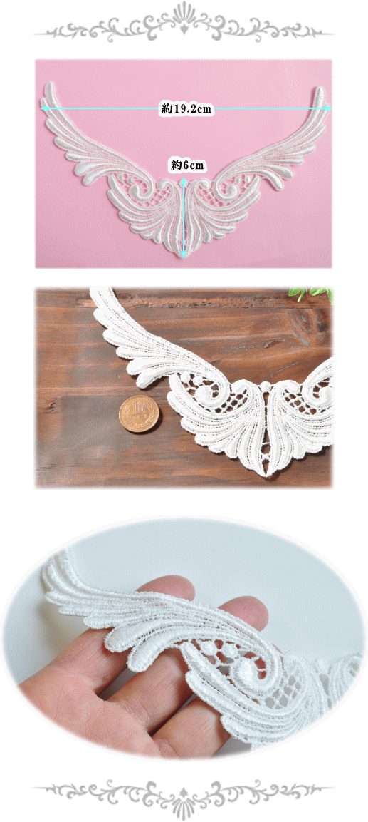(例:1Mを5枚に分けて、1M・2Mを1枚ずつ、など)国産ケミカルレースモチーフ1枚入り日本の歴史あるレース工場で作られたレースモチーフです。