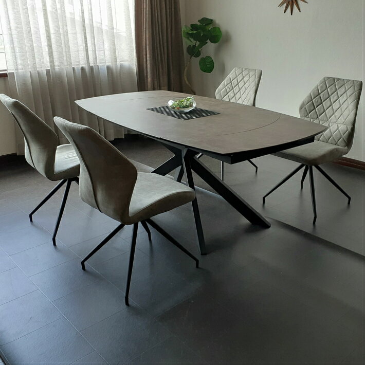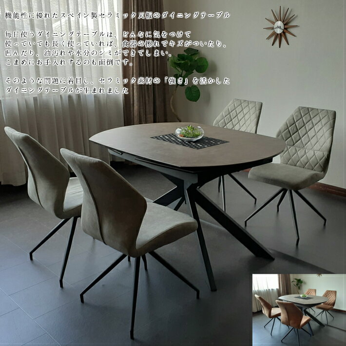 ダイニングテーブルセット セラミック スペインセラミック 伸張式ダイニングテーブル 130cm幅 190cm幅 ダイニングテーブル 回転式 130SPTB 4人掛け モダン 食卓 ダイニング5点セット 強化ガラス レザーファブリック ダイアモンドステッチ
